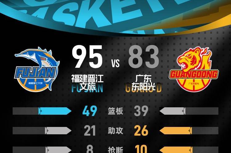【搜狐体育战报】北京时间4月18日CBA常规赛第40轮,客场作战的福建晋江文旅以95-83击败广东东阳光,福建晋江文旅取得3连胜。邹阳20分10篮板0助攻,特雷维林·奎因31分9篮板5助攻。